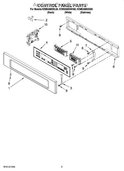 This is a Whirlpool microwave/oven combo control panel assembly. This control panel is intended for installation on wall-style ovens. The control panel assembly contains the controls and circuit board that dictate the functions of the microwave and stove. It is essential to have a properly functioning assembly and control board to ensure satisfactory heating.Always test with a voltage meter before diagnosing an appliance issue. When the control board begins to malfunction, all or some of the appliance's functions may start to fail. This can happen over time or all at once, depending on the severity of the malfunction. Baking and broiling may work periodically, certain microwave functions may not work, or the backlight on the timer area may go out. Unplug the electrical source and slide the unit out from the wall. Open the lower area and locate the two bottom screws that fasten the trim in place around the unit. This will allow removal from the perimeter of the entire appliance. Moving to the top where the control panel is, locate the two screws on the bottom of the control panel assembly. Removing these will free the assembly, and the wire harness can be disconnected. Connect the new component and replace the screws and trim.This part is compatible with Whirlpool and KitchenAid appliances.