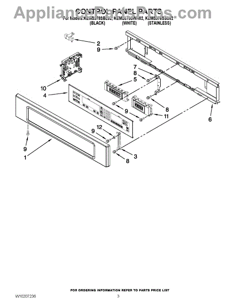 Parts for Kitchenaid KEMS378SSS02: 02 - Control Panel Parts