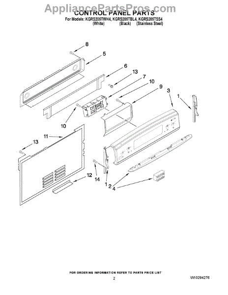 Parts for Kitchenaid KGRS205TSS4: 02 - Control Panel Parts