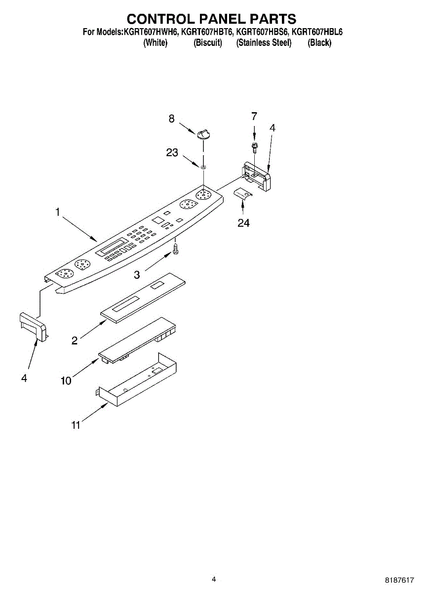 Parts for Kitchenaid KGRT607HBS6: 03 - Control Panel Parts