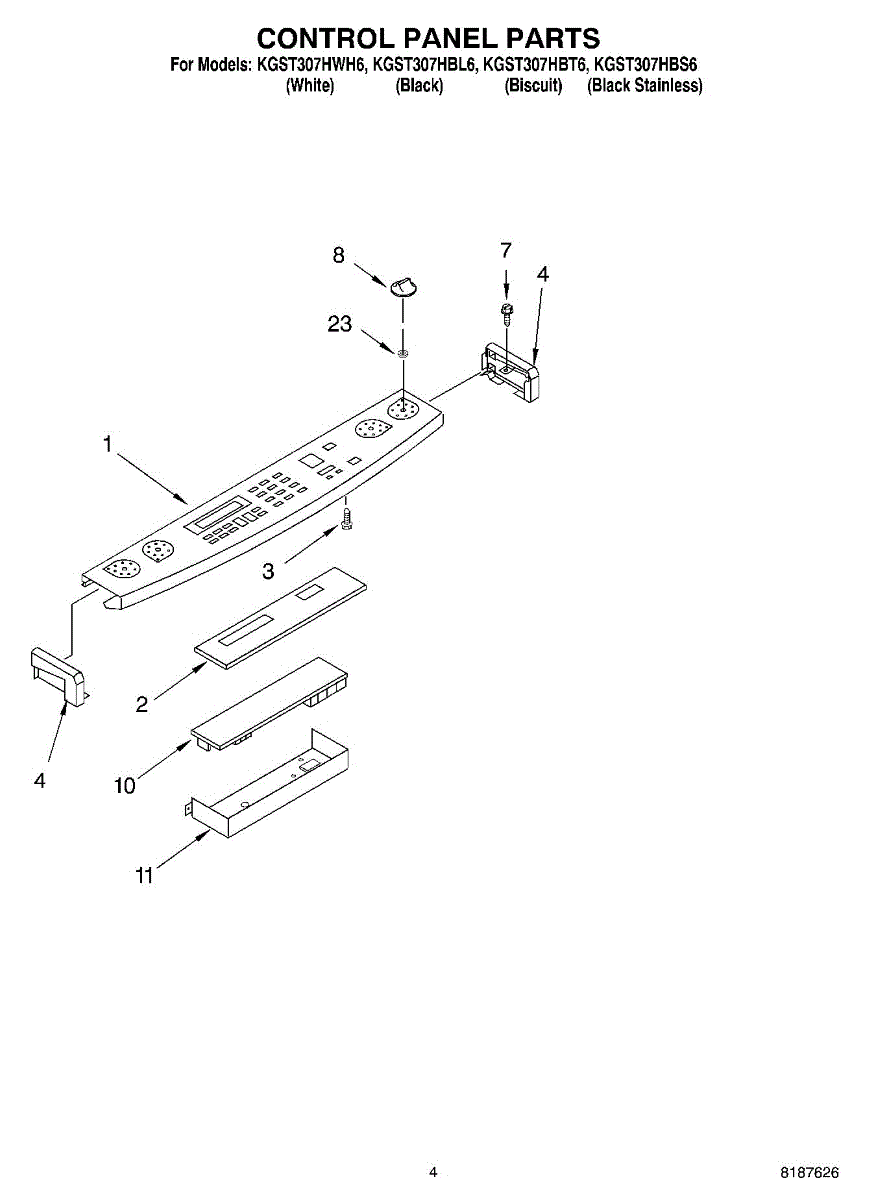Parts for Kitchenaid KGST307HBS6: 03 - Control Panel Parts