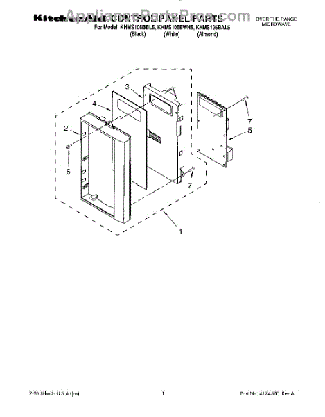 Parts for Kitchenaid KHMS105BAL5: 01 - Control Panel Parts