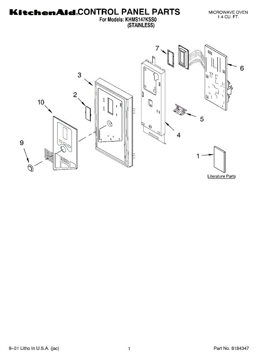 Parts for Kitchenaid KHMS147KSS0: 01 - Control Panel, Literature Parts