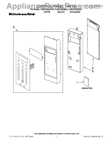 Parts for Kitchenaid KHMS1850SSS0: 01 - Control Panel Parts