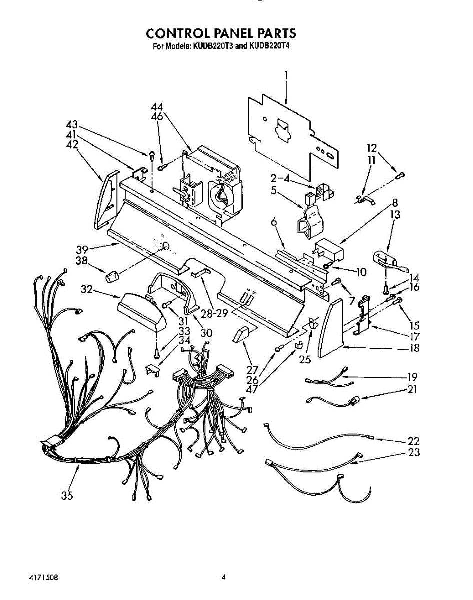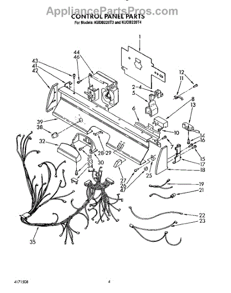 Parts for Kitchenaid KUDB220T4: 04 - Control Panel, Lit / Optional Parts