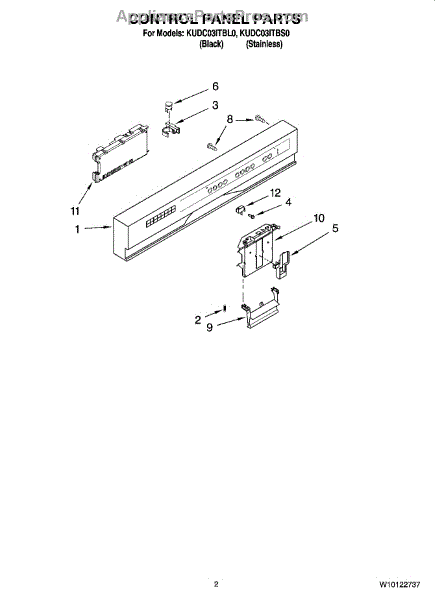 Parts for Kitchenaid KUDC03ITBS0: 02 - Control Panel Parts