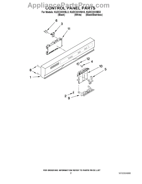 Parts for Kitchenaid KUDC03IVBS3: 02 - Control Panel Parts