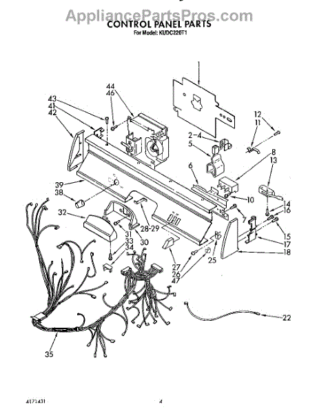Parts for Kitchenaid KUDC220T1: 04 - Control Panel, Lit / Optional Parts