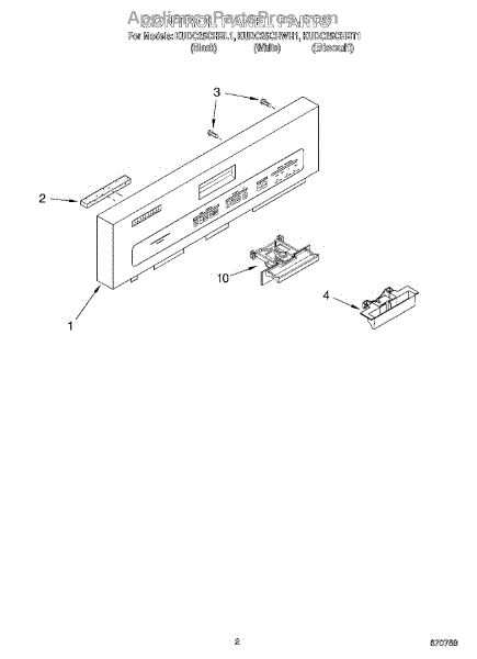 Parts for Kitchenaid KUDC25CHWH1: 02 - Control Panel Parts