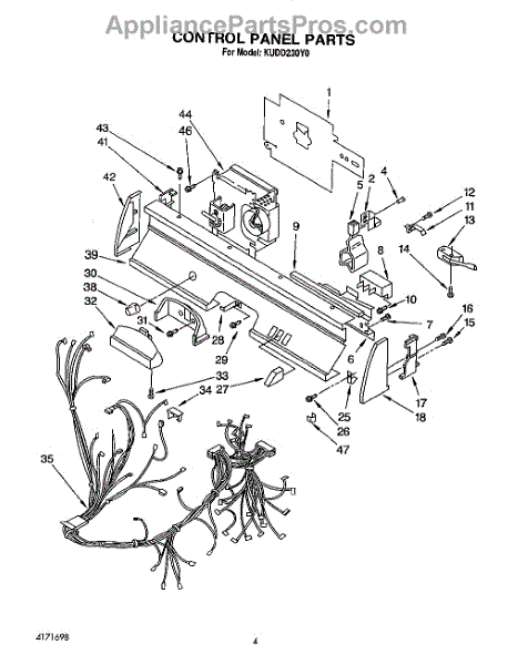 Parts for Kitchenaid KUDD230Y0: 04 - Control Panel, Lit / Optional Parts