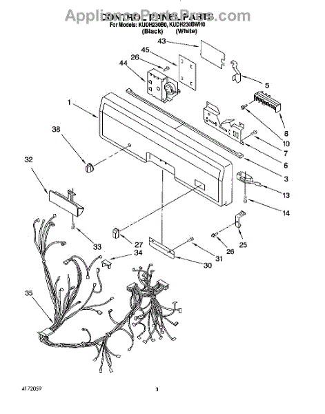 Parts for Kitchenaid KUDH230B0: 03 - Control Panel, Lit / Optional Parts