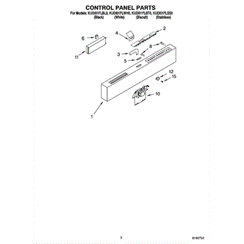 This touch pad control panel mounts on the dishwasher door, housing the buttons for cycle selection. Replace when buttons are worn, unresponsive, or cracked.