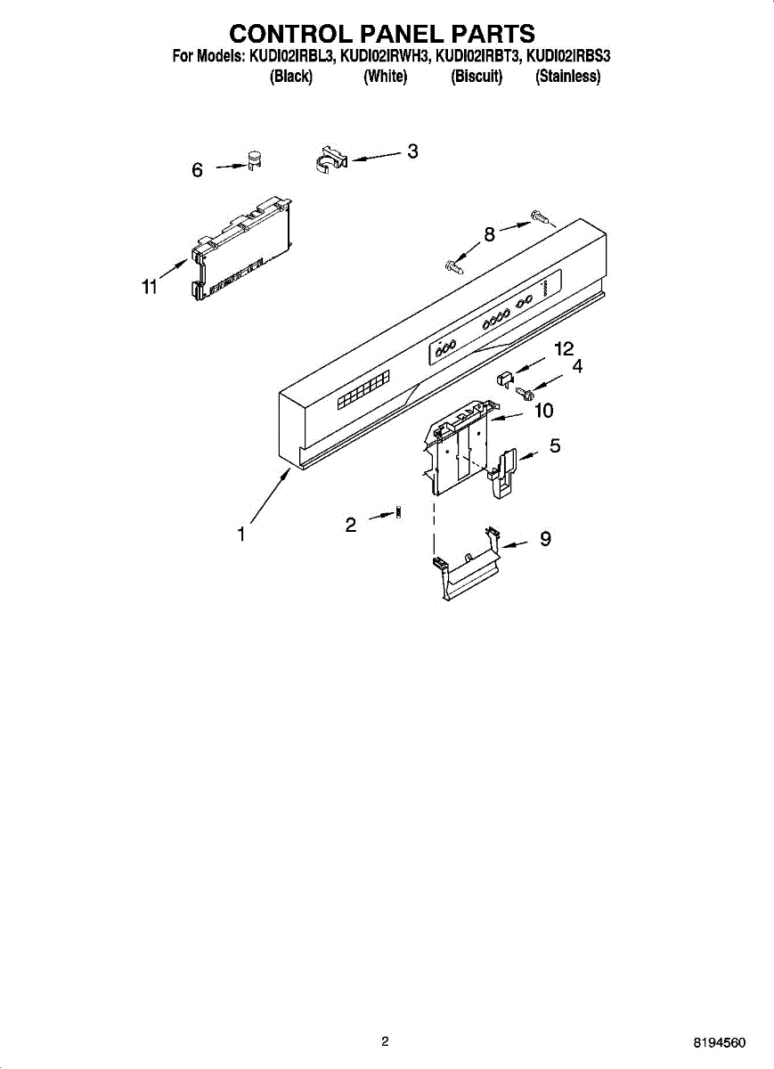 Parts for Kitchenaid KUDI02IRBS3: 02 - Control Panel Parts