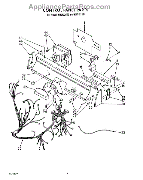 Parts for Kitchenaid KUDI220T4: 04 - Control Panel, Lit / Optional Parts