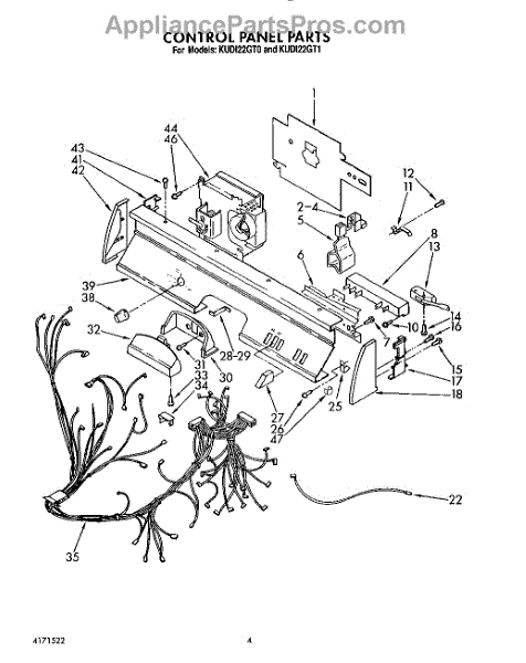 Parts for Kitchenaid KUDI22GT0: 04 - Control Panel, Lit / Optional Parts