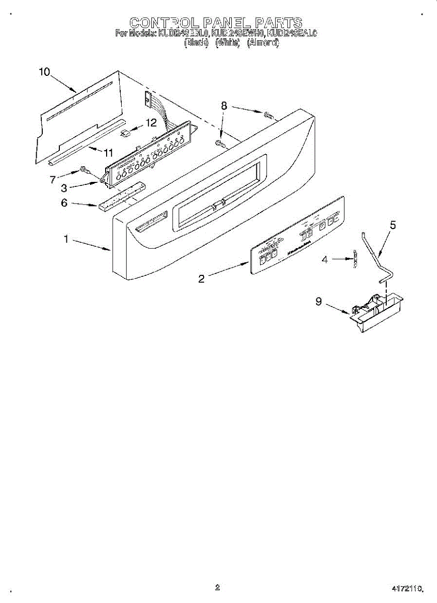 Parts for Kitchenaid KUDI24SEBL0: 02 - Control Panel Parts