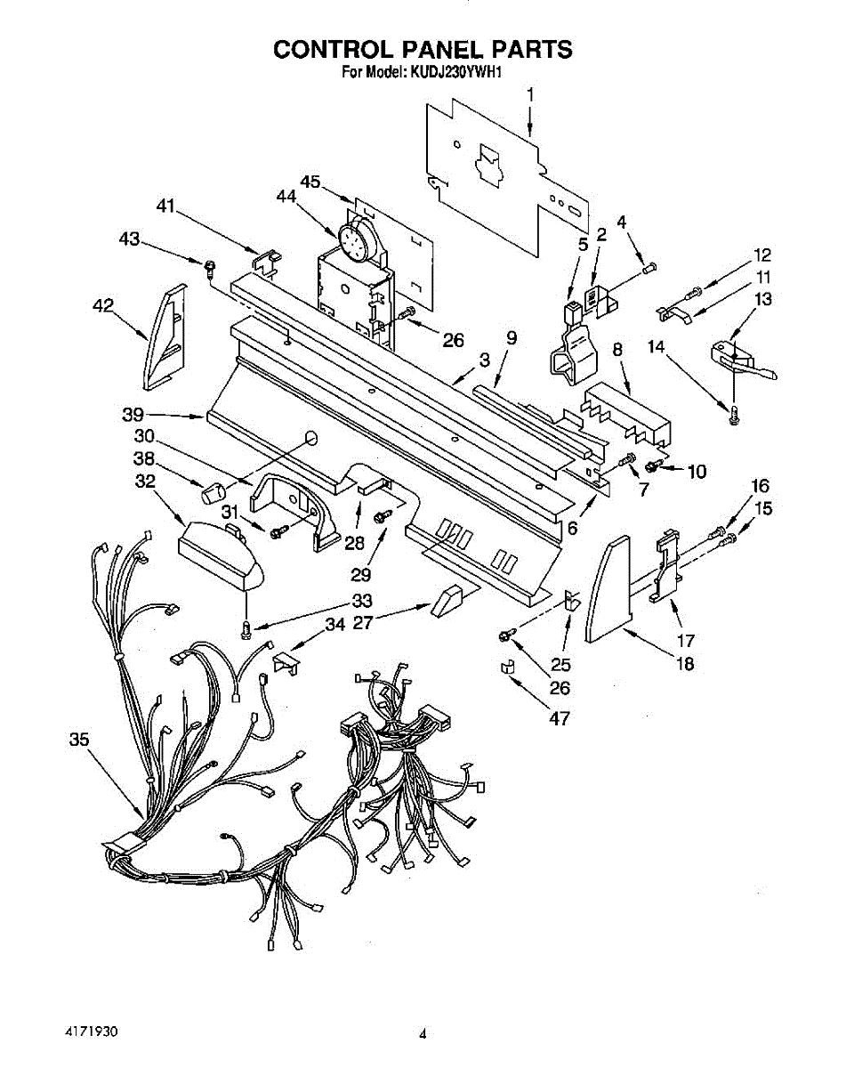 Parts for Kitchenaid KUDJ230YWH1: 03 - Control Panel, Lit / Optional Parts