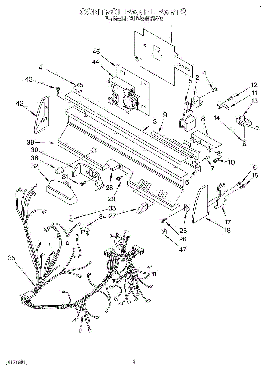 Parts for Kitchenaid KUDJ23HYWH2: 03 - Control Panel, Lit / Optional Parts