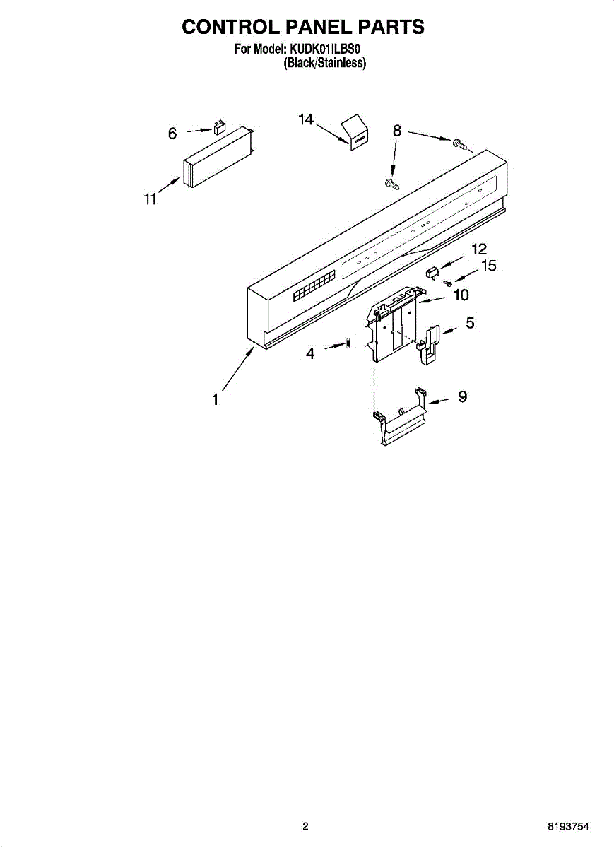 Parts for Kitchenaid KUDK01ILBS0: 02 - Control Panel Parts
