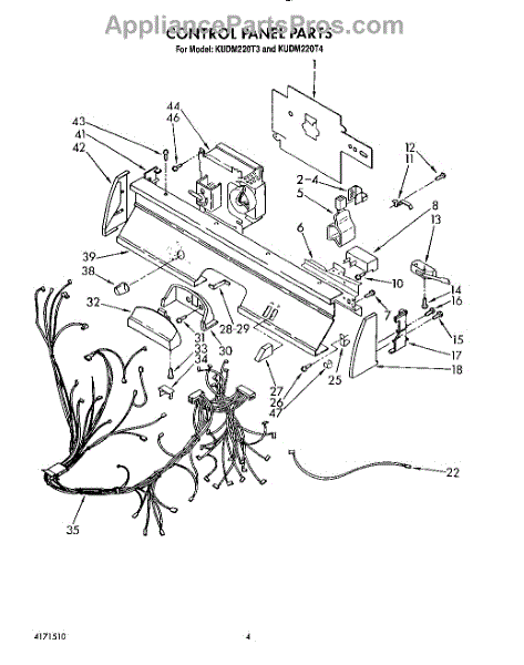 Parts for Kitchenaid KUDM220T3: 04 - Control Panel, Lit / Optional Parts