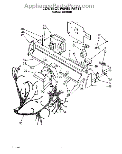 Parts for Kitchenaid KUDM220T5: 04 - Control Panel, Lit / Optional Parts