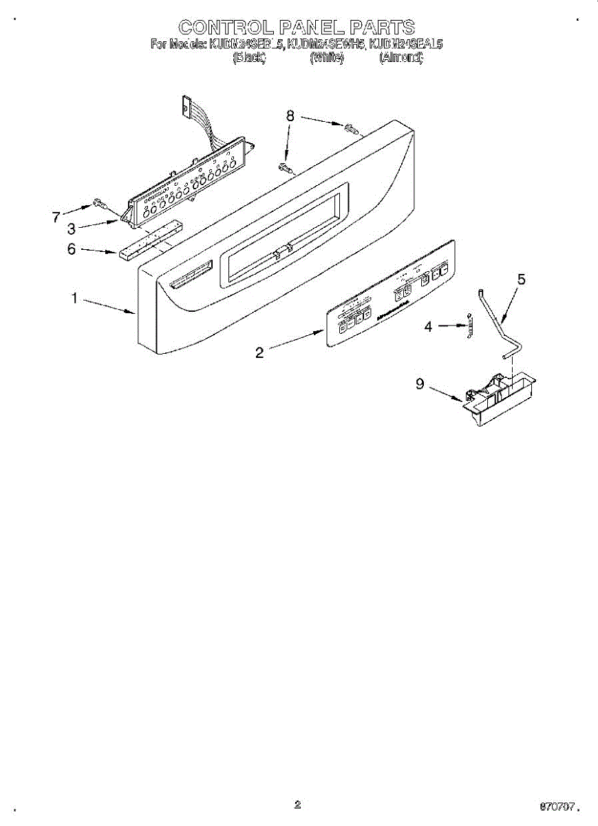 Parts for Kitchenaid KUDM24SEBL5: 02 - Control Panel Parts
