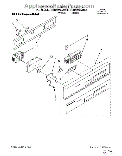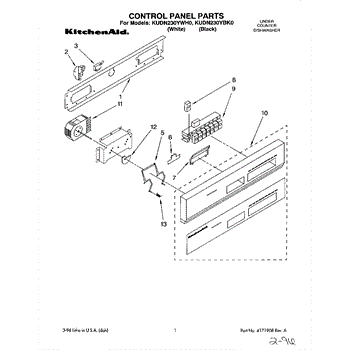 Parts for Kitchenaid KUDN230YBK0: 01 - Control Panel Parts
