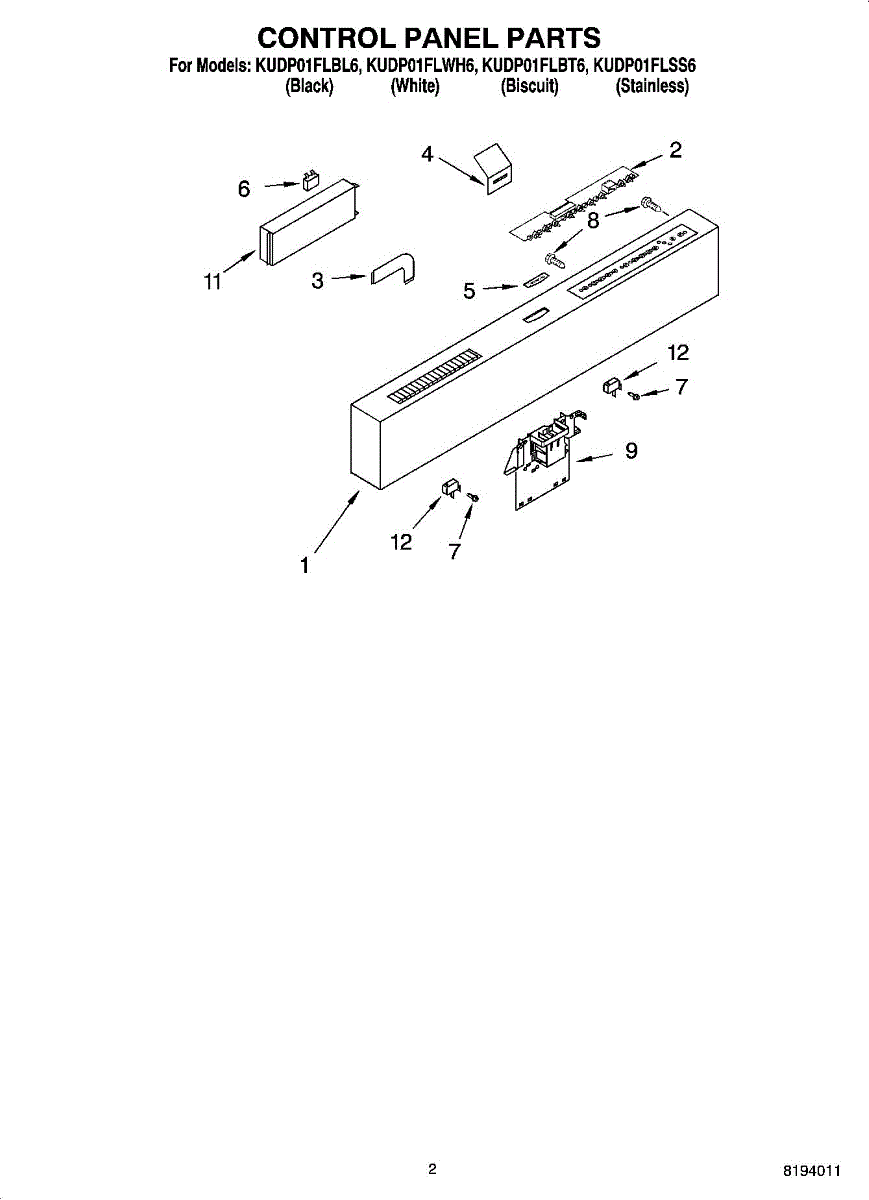 Parts for Kitchenaid KUDP01FLBL6: 02 - Control Panel Parts