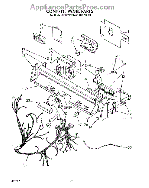 Parts for Kitchenaid KUDP220T4: 04 - Control Panel, Lit / Optional Parts