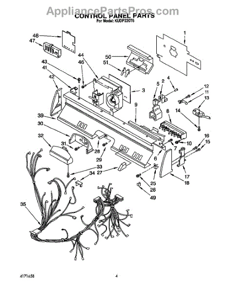 Parts for Kitchenaid KUDP220T6: 04 - Control Panel, Lit / Optional Parts