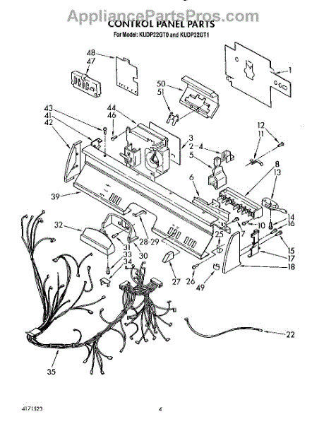Parts for Kitchenaid KUDP22GT1: 04 - Control Panel, Lit / Optional Parts