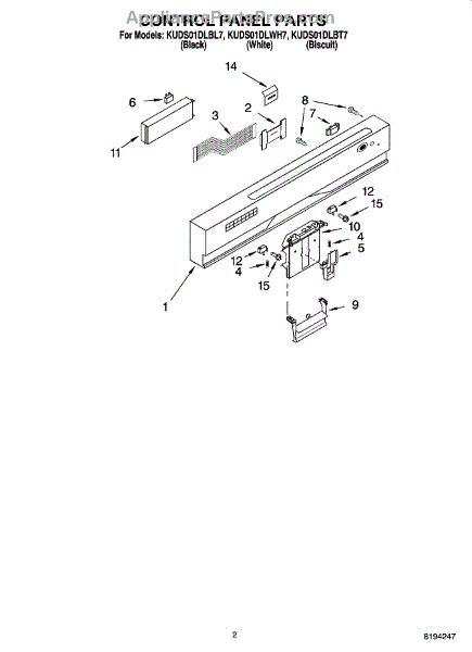 Parts for Kitchenaid KUDS01DLBL7: 02 - Control Panel Parts