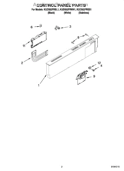Parts for Kitchenaid KUDS02FRBL1: 02 - Control Panel Parts