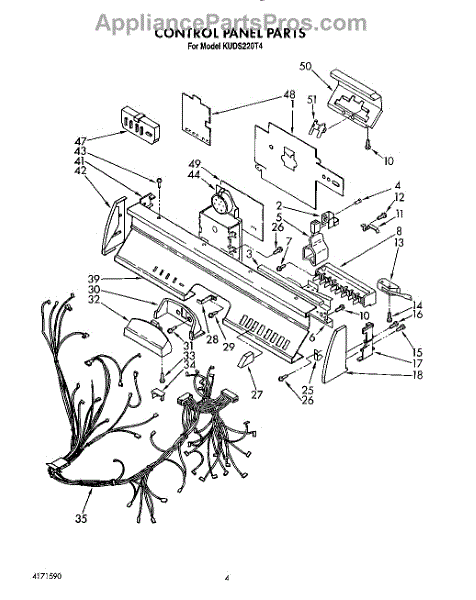 Parts for Kitchenaid KUDS220T4: 04 - Control Panel, Lit / Optional Parts