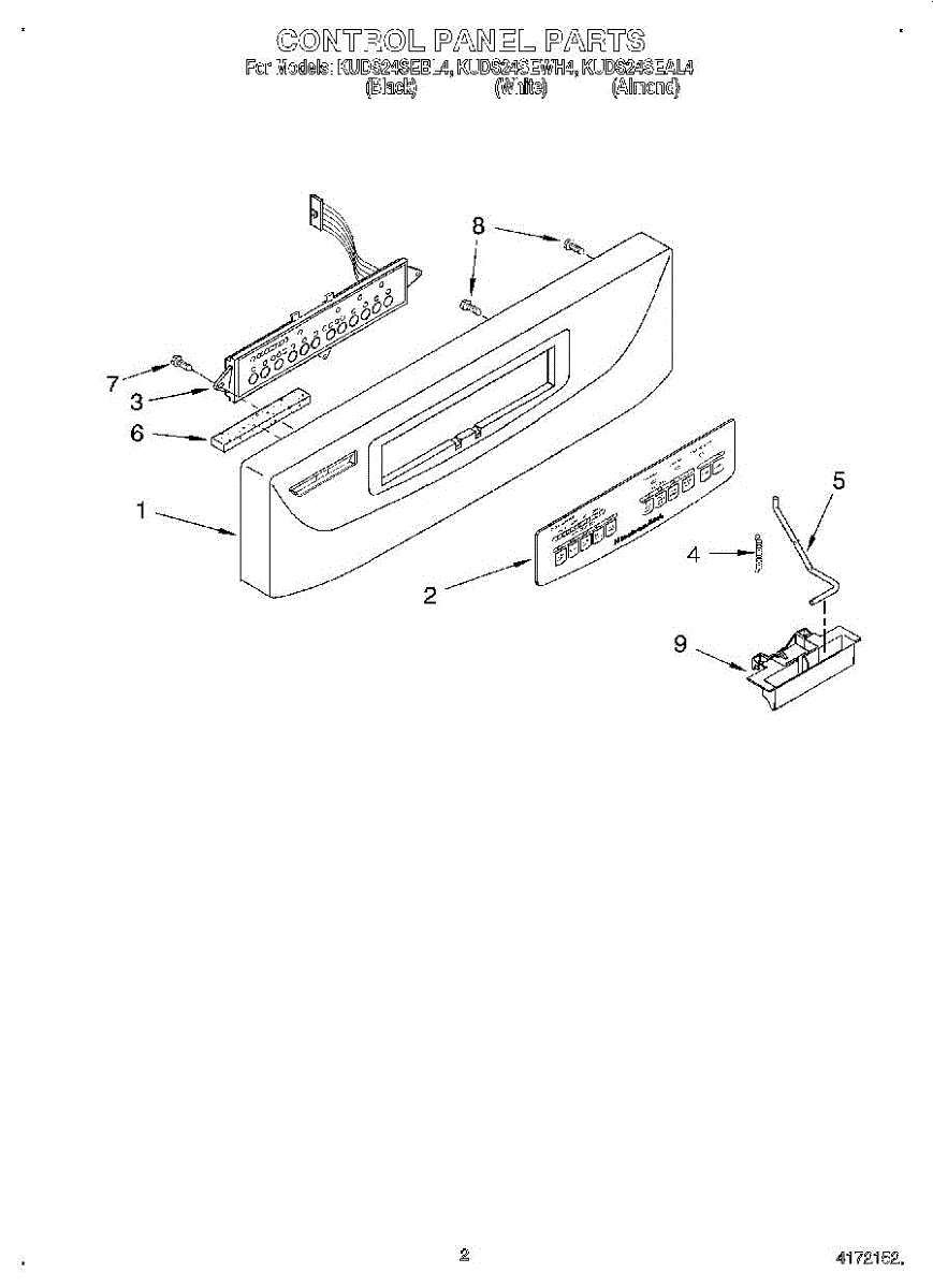 Parts for Kitchenaid KUDS24SEBL4: 02 - Control Panel Parts