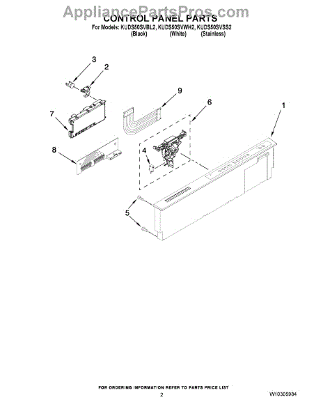 Parts for Kitchenaid KUDS50SVBL2: 02 - Control Panel Parts