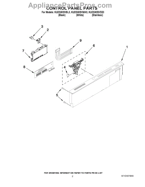 Parts for Kitchenaid KUDS50SVBL3: 02 - Control Panel Parts