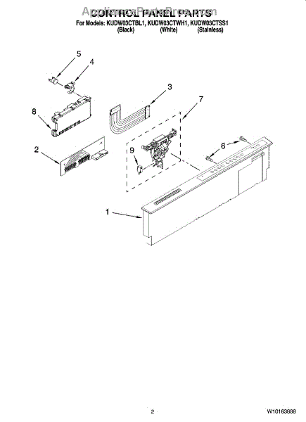 Note: Main control board not included. For black use WP8572354. For white use WP8572355