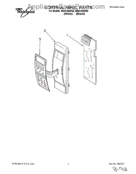 Parts for Whirlpool MG8120XDQ0: 01 - Control Panel Parts