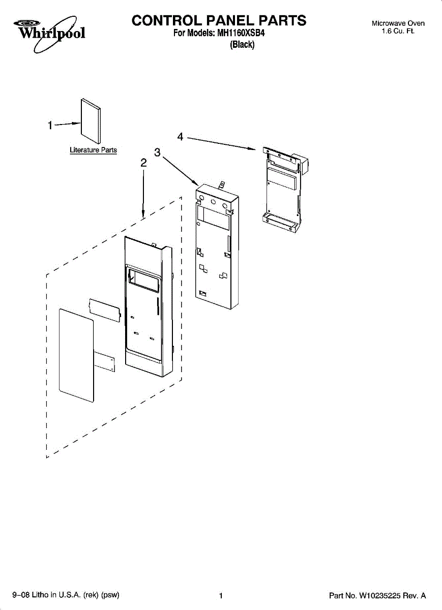 Parts for Whirlpool MH1160XSB4: 01 - Control Panel Parts
