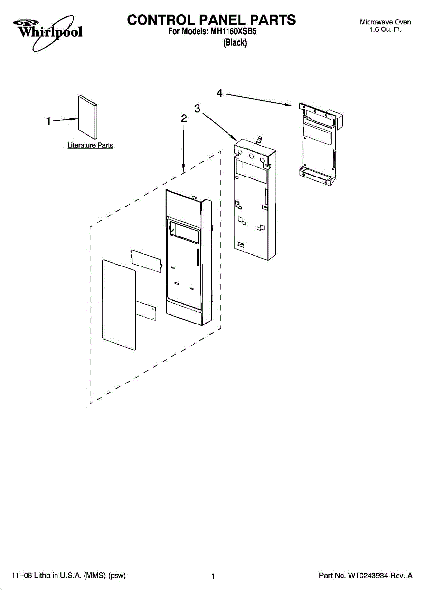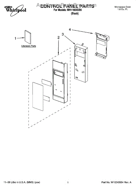 Parts for Whirlpool MH1160XSB5: 01 - Control Panel Parts
