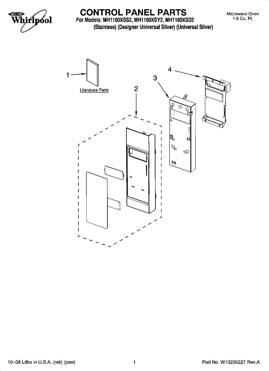 Parts for Whirlpool MH1160XSD2: 01 - Control Panel Parts
