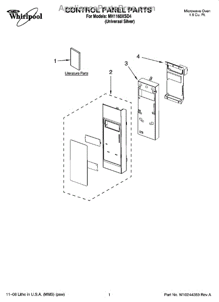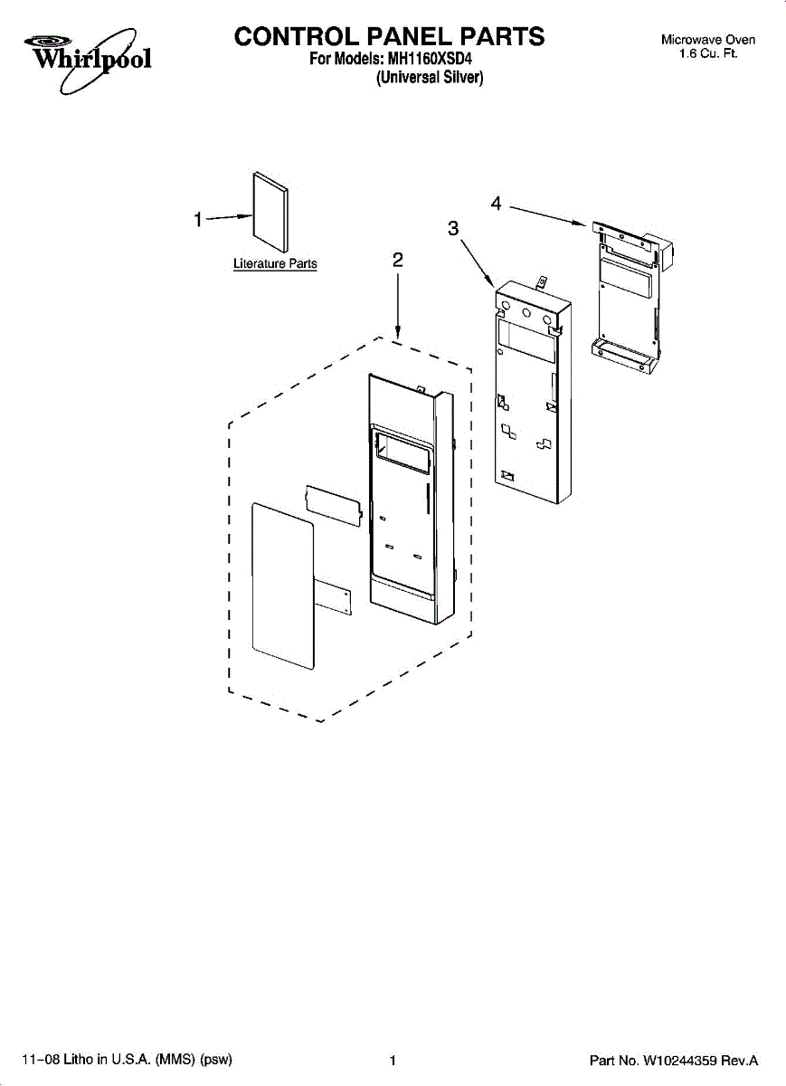 Parts for Whirlpool MH1160XSD4: 01 - Control Panel Parts