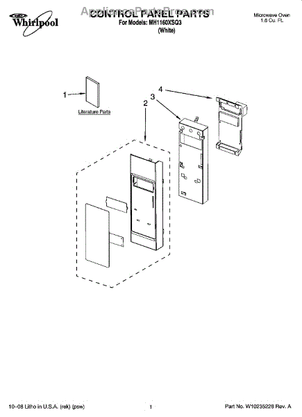 Parts for Whirlpool MH1160XSQ3: 01 - Control Panel Parts
