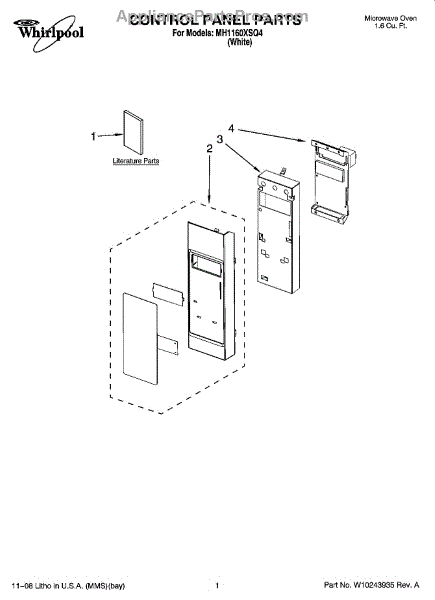 Parts for Whirlpool MH1160XSQ4: 01 - Control Panel Parts