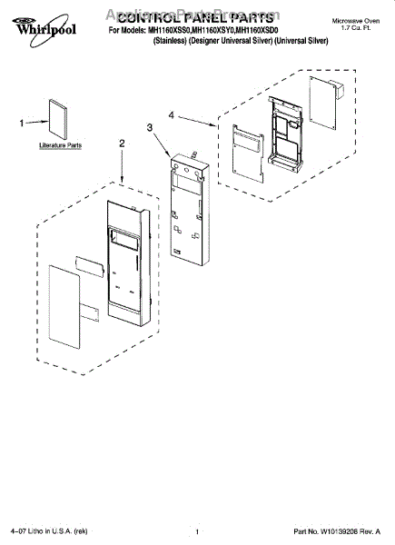 Parts for Whirlpool MH1160XSY0: 01 - Control Panel Parts