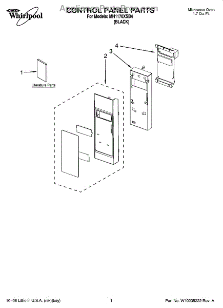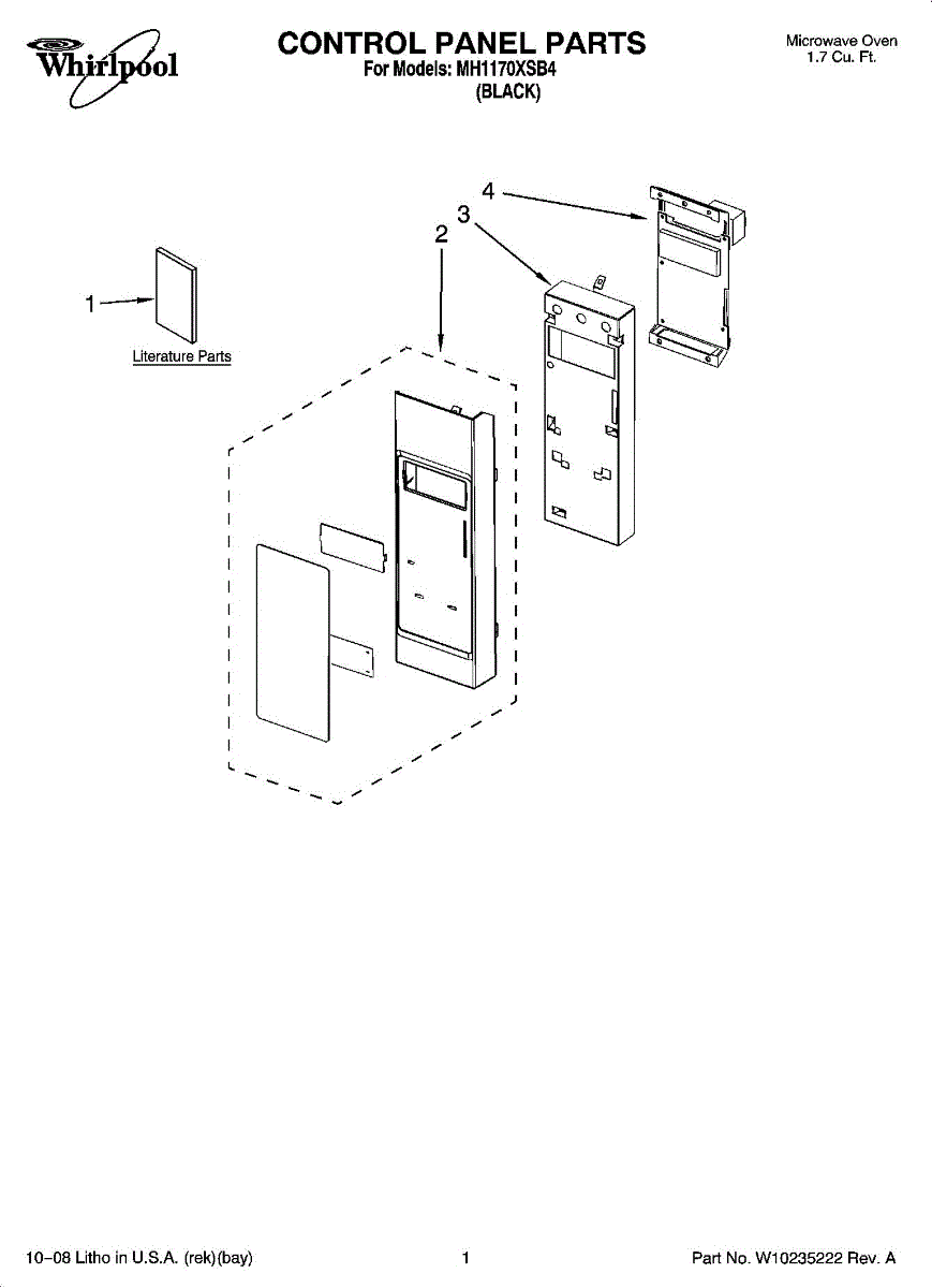 Parts for Whirlpool MH1170XSB4: 01 - Control Panel Parts