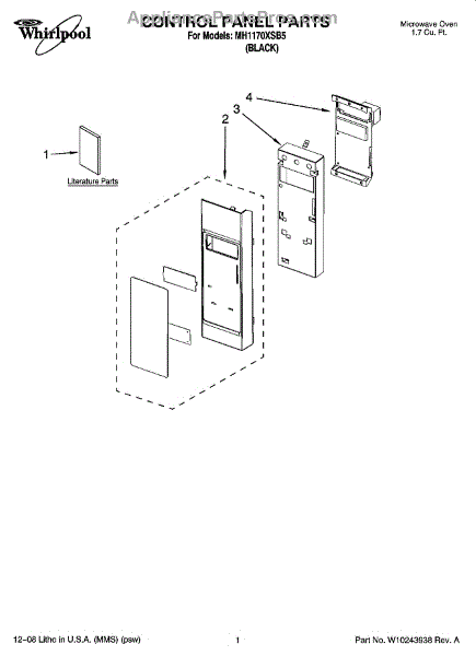 Parts for Whirlpool MH1170XSB5: 01 - Control Panel Parts