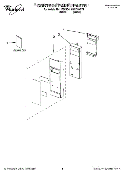 Parts for Whirlpool MH1170XSQ4: 01 - Control Panel Parts