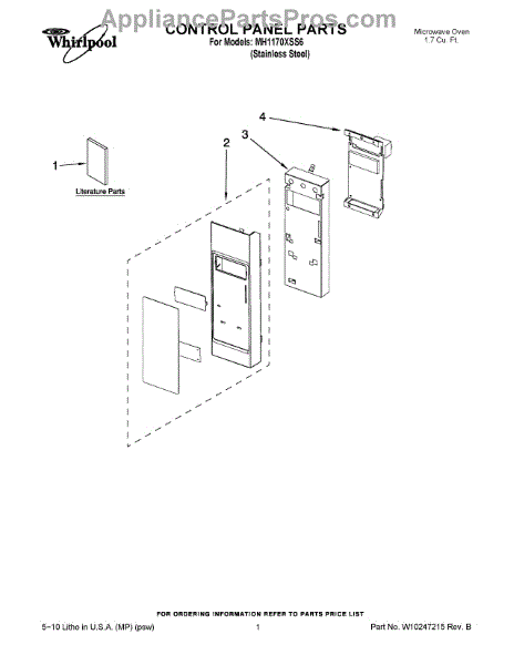 Parts for Whirlpool MH1170XSS6: 01 - Control Panel Parts